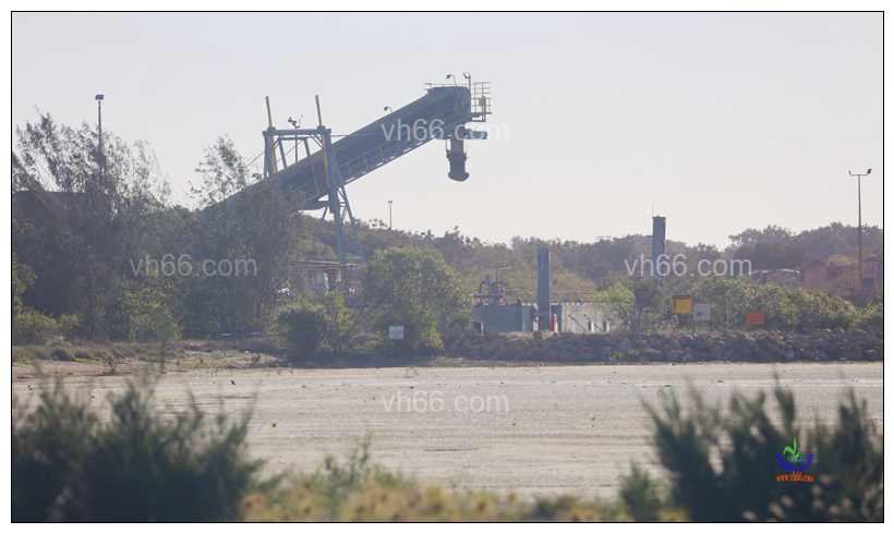 Port of Bing Bong barrage loading facility. Zinc and lead is mined and processed at McArthur River Mine and trucked to Bing Bong Loading Facility on the Gulf of Carpentaria, loaded in a barrage the delivery to the cargo ships in the anchorage. Northern Territory.